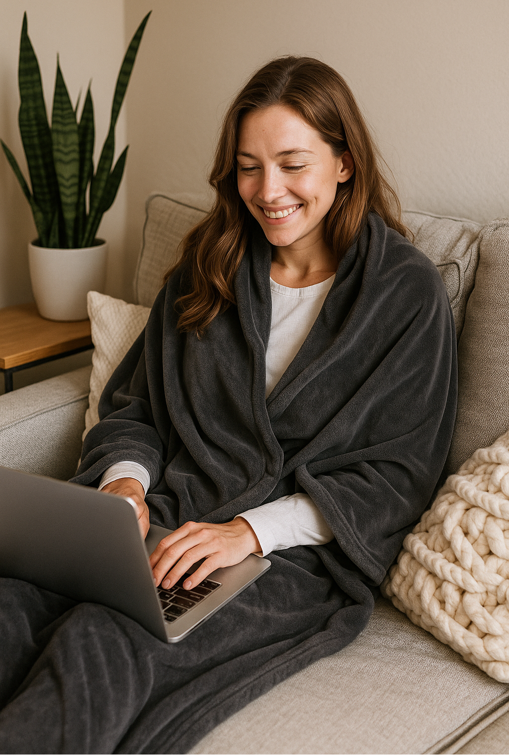 The WarmAura™ Heated Blanket keeps you cozy, focused, and comfortable without turning up the heat.